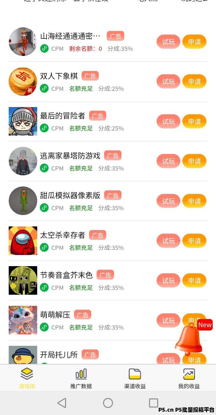 - 游戏流水:推广平台内《兵马俑》《天下策》等折扣手游,玩家充值你拿提成,0.1折游戏自带高转化,每单收益直接到账。