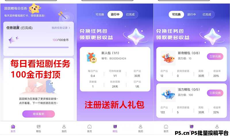 四、鲤包(注册就送新人任务包每天释放0.4个)可复投更多包
